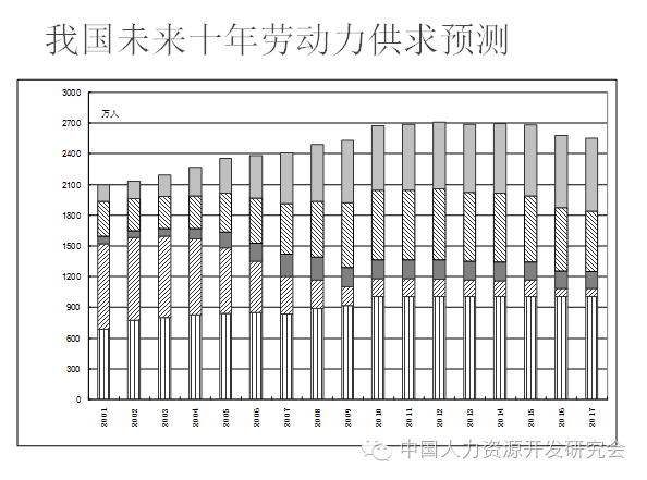 高校毕业生,从新世纪的100万,现在到了756万,这15年增加了7倍,增加7倍以后,劳动力市场发生了天翻地覆的变化。现在每年新进入市场劳动的大数是1500万,可是到了2001年的时候,高校毕业生100多万,可是现在初中毕业生每年可能才100多万,在HR的招聘工作中,就会发现招越低的,有时候反而越难,因为它的结构变了,都上大学去了,这是目前面临的一个重要的考验,但同时也是一个巨大的机会,因为他们文化素质提高了。