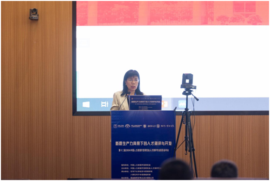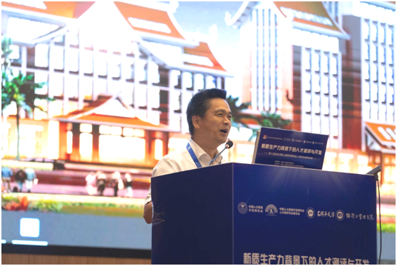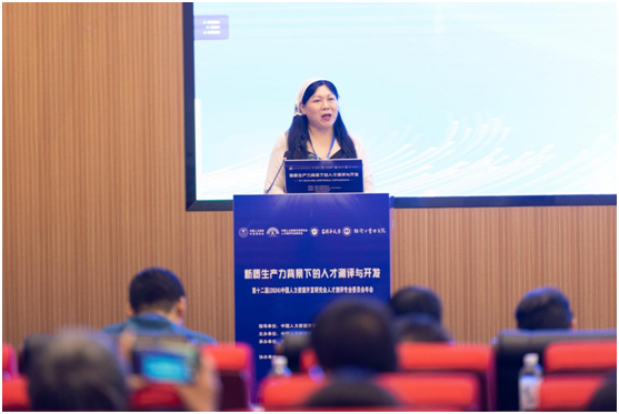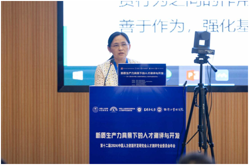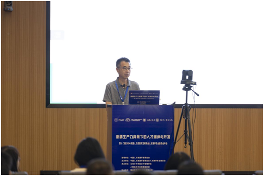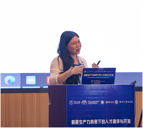 沈阳城市建设学院管理学院副院长李佳作题为《新质生产力时代下国家战略人才评价体系构建研究》的主题报告。