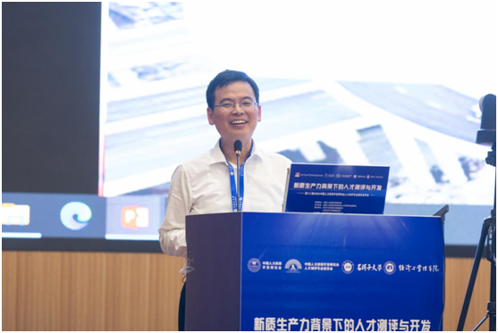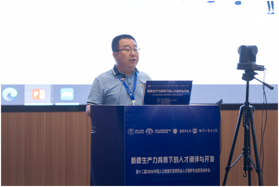 北京潜质大数据科学研究院院长、高级工程师、领途教育咨询(北京)有限公司总经理刘佰明作题为《基于新质生产力的百年人才测评数字化转型研究》的主题报告。