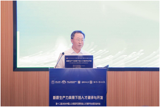 中国人力资源开发研究会副会长兼秘书长胡继申代表中国人力资源开发研究会对本届年会表示祝贺,并认为年会召开的时机好、主题好、地点好,相信此次年会必将对人才测评专委会的高质量发展起到重要作用。他指出,学习贯彻党的二十届三中全会精神意义重大、使命光荣,未来人才测评专委会要适应新形势、新任务,推进建立以创新能力、质量、效益为导向的人才评价体系,要创新人才测评方法,助力科学选出促进新质生产力发展的优秀人才,为实现加快建设国家战略人才力量这一目标做出应有的贡献。