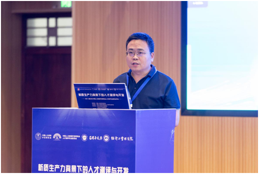 中国政法大学政治与公共管理学院教授王明杰作题为《数字人才赋能新质生产力发展》的主题报告。