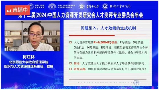 北京师范大学政府管理学院组织与人力资源管理系主任柯江林作题为《如何为基层治理人才营造良好的干事创业氛围:基于fsQCA方法的经验研究》的主题报告。