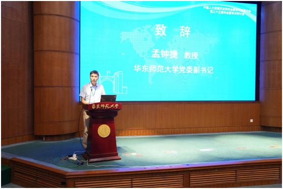 华东师范大学党委副书记孟钟捷教授致欢迎辞,热诚欢迎来自全国各高校的老师们齐聚华东师范大学,共商人力资源管理的创新发展;并指出本次会议将能够利于深化人力资源管理专业本科教学改革、创新人才培养模式,确保复合型人才培养举措再上新台阶,进一步推动卓越人才培养高质量发展。