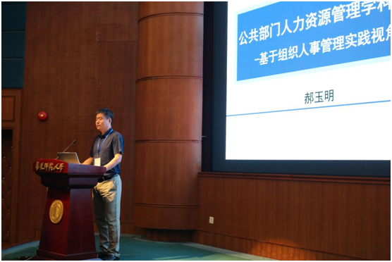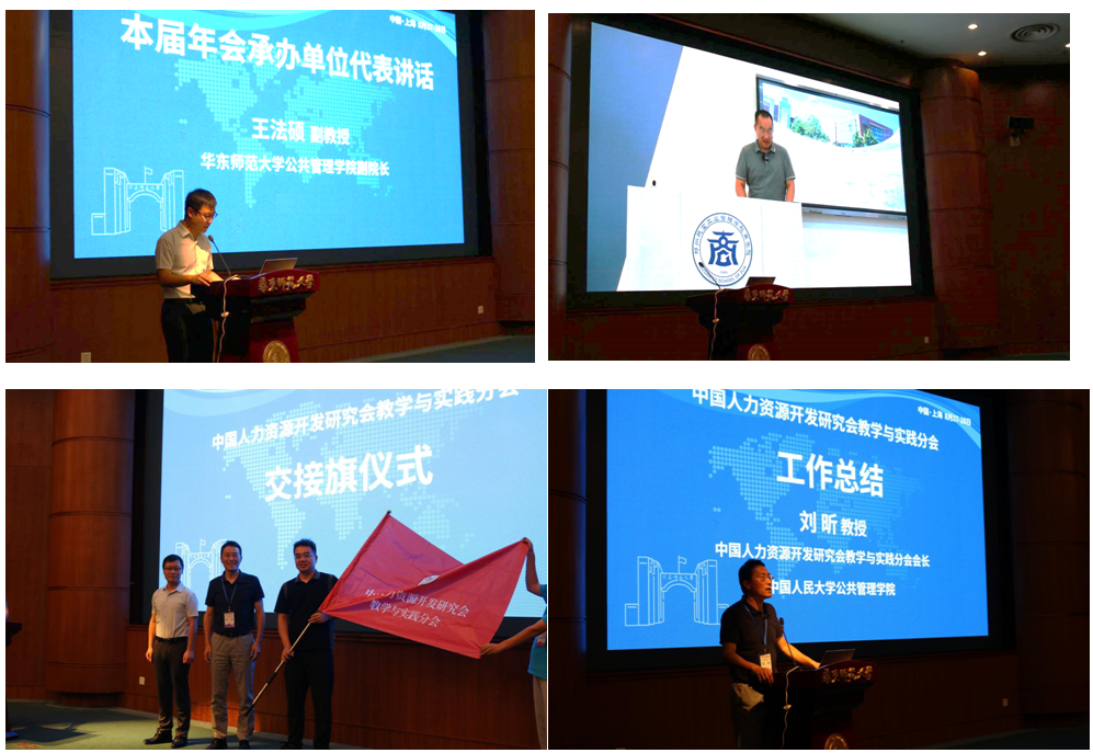 在优秀论文颁奖后,此次年会闭幕式顺利举行。华东师范大学公共管理学院副院长王法硕副教授作为本届年会承办单位代表讲话,下一届承办单位郑州航空工业管理学院商学院闫俊周教授作为下届承办单位讲话。之后,在中国人力资源开发研究会教学与实践会分刘昕会长及在场百余名参会代表的见证下,华东师大公共管理学院与郑州航空工业管理学院商学院进行了会旗交接。