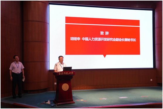 中国人力资源开发研究会副会长兼秘书长胡继申宣读了欧晓理会长的致辞。致辞中强调,人力资源是推动经济社会发展的核心要素,在当前快速变化的时代背景下,科技日新月异、市场竞争愈发激烈,人力资源领域面临着诸多新的挑战和机遇;期待着各位参会者能够积极参与讨论,分享自己的观点和经验,共同探讨解决问题的思路和方法。