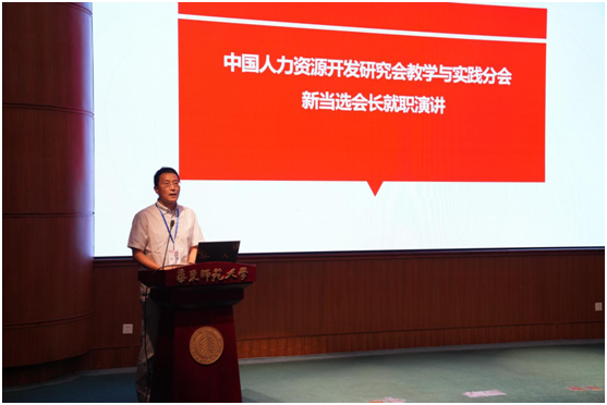 8月27日上午11点30分,在四场主题报告后,会场进行了中国人力资源开发研究会教学与实践分会换届大会,由广东财经大学董福荣教授主持。