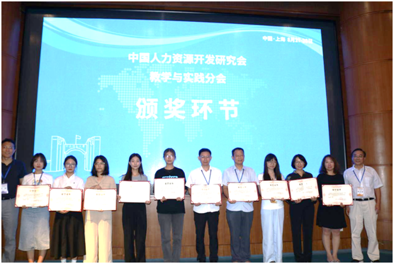 此后,会场进行了本届年会优秀论文的颁奖环节。此次年会优秀论文设有学术研究类和教学研究类两个系列。在会议现场,中国人力资源开发研究会教学与实践会分会长刘昕教授和副会长朱秘祥教授为获奖代表颁发了证书。