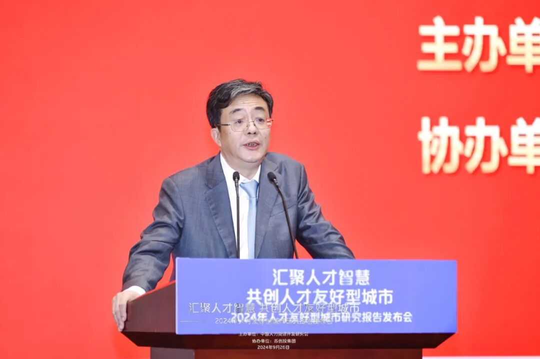 今天是研究会的年会,也是研究会一年一度的大日子,在座各位都是研究会的成员和我们亲密的伙伴,首先向大家表示热烈欢迎,我代表研究会感谢大家一年来的支持。在今天这样一个重要的日子,研究会还有一个重磅的产品要发布,那就是《2024年人才友好型城市研究报告》,这是研究会自去年10月换届以来最重要的一个研究报告。研究团队倾注了非常多的心血,加班加点付出很多!在这里我也要代表研究会感谢研究团队,并且给你们点赞!我也想借今天这个场合跟大家报告一下研究会为什么要发起这项研究,这项研究的意义到底在哪里。